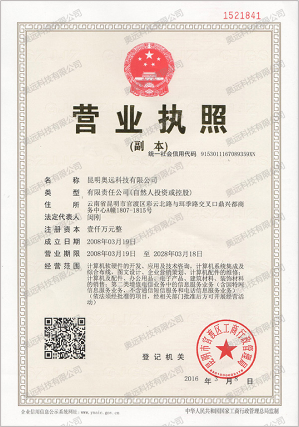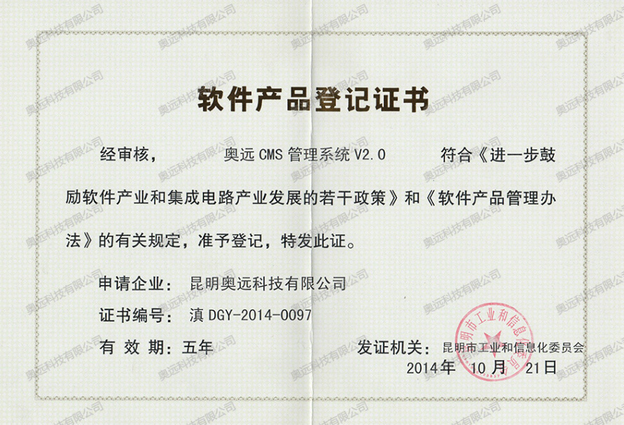 昆明奧遠科技有限公司成立于2008年,注冊資金1000萬元,是一家專業從事系統開發、網站建設、移動端應用(wap、微信、APP)、新媒體推廣運營等互聯網業務的高新科技企業,是國內率先的“互聯網+”解決方案提供商。公司秉承著“為客戶創造價值!”的經營理念,已為眾多品牌企業搭建好有效的互聯網平臺,推動企業輕松跨入“互聯網+”時代,是中國西南地區頗具影響力的信息化建設公司之一。